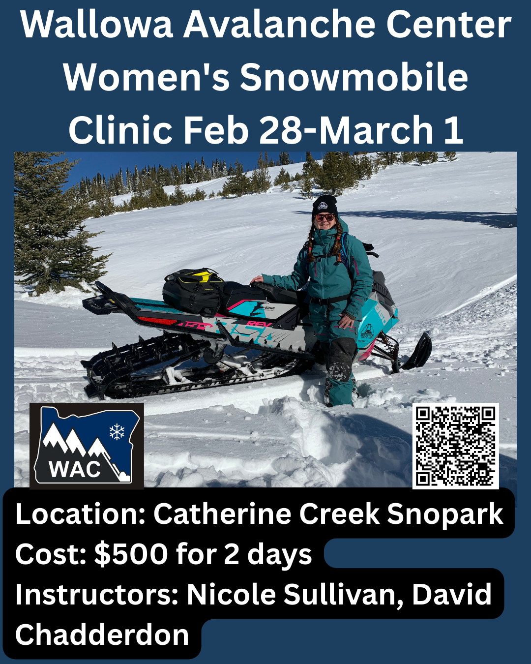 The Wallowa Avalanche Center’s Women’s Snowmobile Riding Clinic will provide a supportive, skills-based learning environment focused on building confidence, avalanche safety awareness, and technical riding ability for female participants. The clinic will be led by experienced instructors, creating a welcoming space for participants to develop their riding skills. Some of the skills covered will include: […]